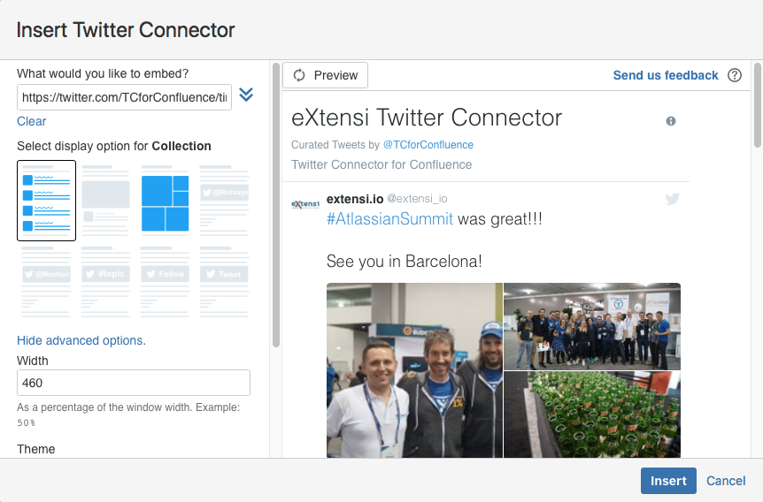 5. When you are fine with the content click "Insert" to insert and save changes to the page